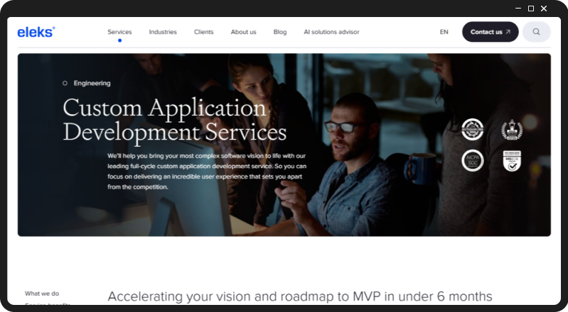 ELEKS is one of the leading companies in custom mobile app development. The company is recognized for providing comprehensive development services. From initial planning to development and deployment, ELEKS takes complete charge. Moreover, specialized experts at ELEKS minimize the development time and help you introduce the first version of your product within six months.