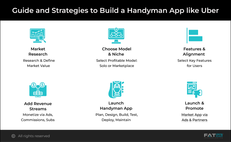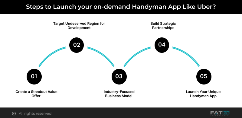 A successful handyman app like Uber is a structured platform that connects professionals with service seekers and homeowners. It delivers value through unique features, streamlined platform operations, and powerful business promotions. Therefore, for the advanced development of your on-demand handyman app, browse through these key strategies to launch a state-of-the-art handyman app like Uber.