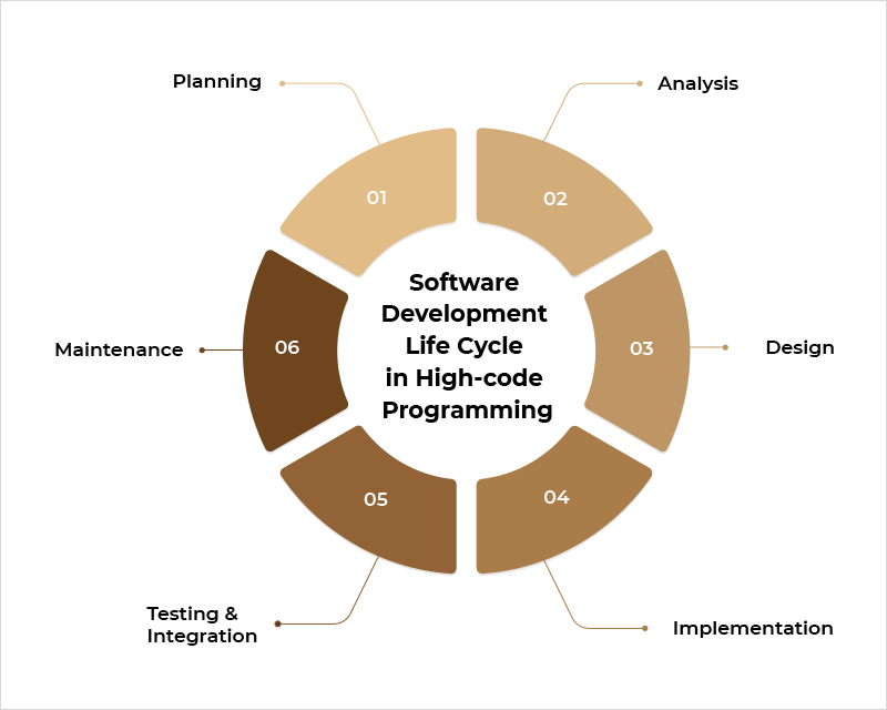 High-code programming involves manual programming of a software from scratch. The developer has to gather all the feature requirements, do feasibility analysis, prepare designs, write code and test the software to build your P2P car rental marketplace. Due to all these stages of the software development life cycle (SDLC), high-code programming is often expensive and time consuming.