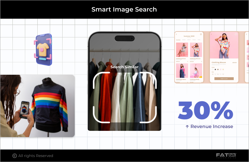 The AI-powered smart search feature is trending. The technology is allowing users to find products simply by clicking or uploading a picture. AI models and algorithms analyze and find the most relevant results from a vast product catalog, making product findings easier and effortless.
