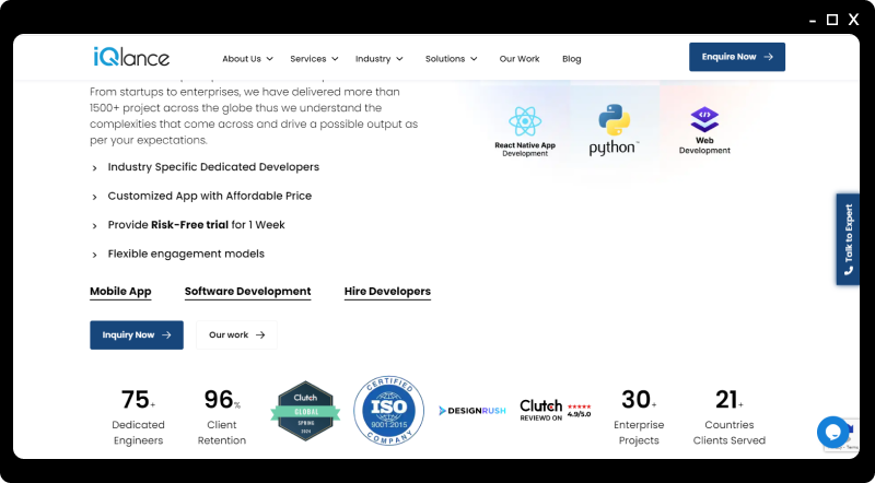 iQlance Solutions is a recognized software development firm that focuses on delivering digital solutions. The company has established itself as an IT partner for businesses across different industries. iQlance has a skilled team of software engineers, mobile app developers and web app developers who collaborate to create scalable solutions tailored to specific business needs. These solutions not only help companies meet their development goals but also enable them to drive business success. Moreover, the company prioritizes offering cost-effective development solutions by allowing businesses to hire dedicated developers from India.