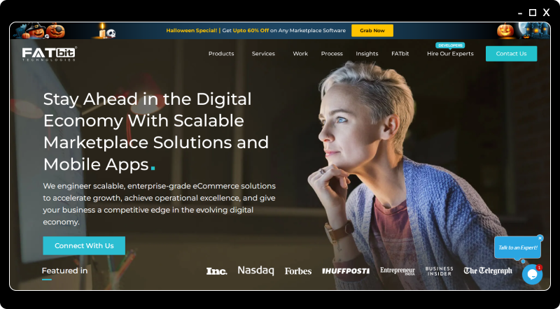 Ans. FATbit can help you develop custom software, readymade software, mobile applications for Android and iOS, mobile applications for enterprises, web applications, eCommerce marketplaces, MVP, CRM and more. In addition, you can also get digital marketing services, website designing, business strategy consultation services, online reputation management services and so on.