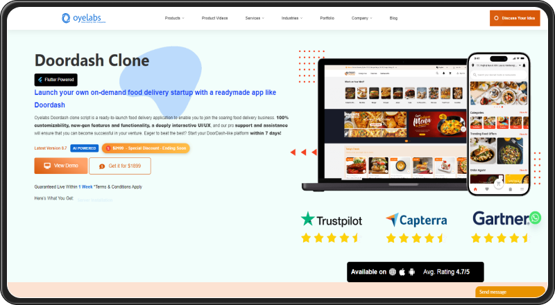 Oyelabs is a proficient DoorDash clone script provider offering a wide range of clone scripts of the industry giants in diverse service sectors. Similarly, for the food ordering and delivery industry, the solution provider offers a client-centric DoorDash clone script to the business owners that is secure and compliant with the global security standards- GDPR, PCI-DSS, NDA, and more, as per the business requirement. Furthermore, it is applauded for providing transparent and streamlined collaborative project coordination, favored for foodpreneurs looking for robust food delivery scripts to launch their business.