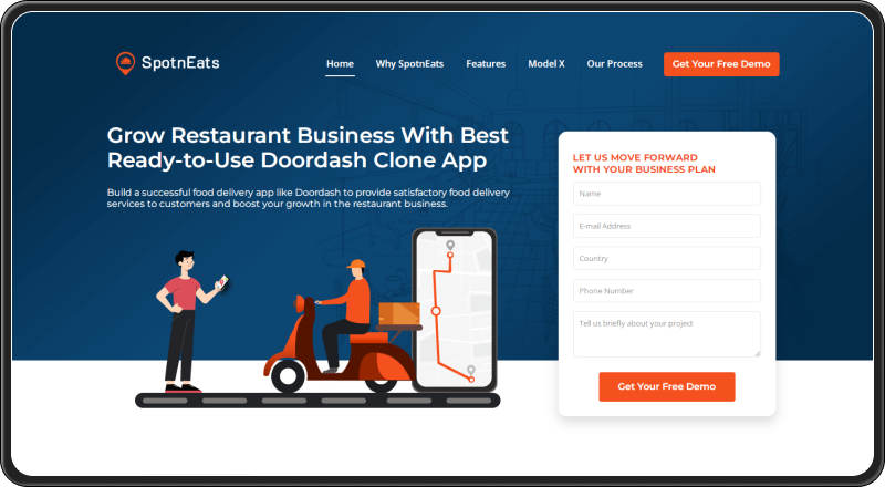 SpotsnEats is a cloud-based DoorDash clone script that launches your app within a few days. This readymade script is designed to streamline the operations of a restaurant business at a monthly recurring cost, therefore allowing a new business to test its market idea. This is a positive point unless you want to scale your restaurant business’s aggregate platform to multiple cities and countries. Notwithstanding, it is efficient with its highly customizable, scalable functionalities, along with necessary features, and efficient workflows. Further, it offers a free personalised demo available upon request to restaurant businesses.